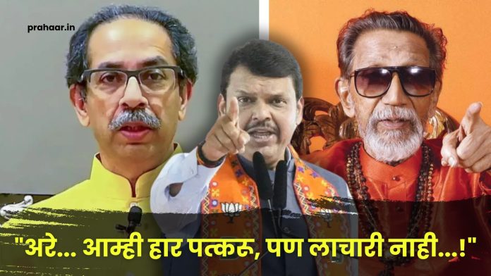 "जर या ठिकाणी ते व्होट जिहादचा नारा देत असतील तर व्होटांचं धर्मयुद्ध आम्हाला करता येतं. व्होटांचं धर्मयुद्ध पुकारा आणि त्या धर्मयुद्धामध्ये आपल्याला माहिती आहे, पार्थाने सांगितलं होतं, जिथे सत्य आहे तिथेच विजय आहे. सत्य आपल्या बाजूने आहे आणि म्हणून विजय देखील आपल्याच बाजूने आहे. उद्धव ठाकरेंनी या ठिकाणी मतांकरता लाचारी पत्करली असेल, अरे आम्ही हार पतकरू पण लाचारी पत्करणार नाही, आम्ही शिवबाची पोरं आहोत, शिवबाचे मावळे आहोत," असेही फडणवीस (Devendra Fadanvis) यावेळी म्हणाले.