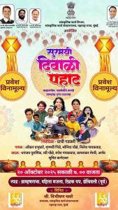 ब्राम्हण सभा, डोंबीवली पूर्व येथे २० ऑक्टोबर २०२५ रोजी पहाटे ७:०० वाजता रंगणाऱ्या या कार्यक्रमात निवेदिका – प्राची गडकरी यांचे निवेदन असून ख्यातनाम गायक ओंकार प्रभुघाटे, गायिका मृण्मयी भिडे, गायिका सोनिया पोंक्षे, गायक निलेश गायकवाड, आपली कला सादर करतील तर धनंजय पुराणिक, रवी पोंक्षे, रुपेश गायकवाड, कमलाकर मेस्त्री, अर्णव सुमित कानेटकर हे वादक कलाकार गाजलेल्या गीतांचा व भावगीतांचा कार्यक्रम रसिकांसाठी सादर करणार आहेत. हा कार्यक्रम रसिक प्रेक्षकांना विनामूल्य पाहता येणार आहे. या कार्यक्रमास जास्तीत जास्त रसिक प्रेक्षकांनी उपस्थित राहावे, असे आवाहन सांस्कृतिक कार्य संचालनालयाचे संचालक विभीषण चवरे यांनी केले आहे.