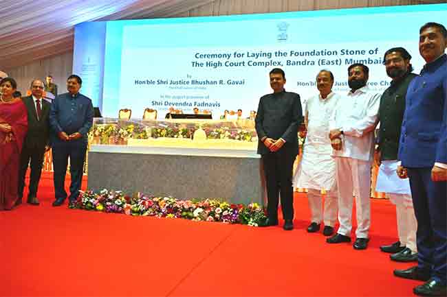 उच्च न्यायालयाच्या नवीन संकुलाचा पायाभरणी आणि कोनशिला अनावरण कार्यक्रम वांद्रे पूर्व येथील शासकीय वसाहत परिसरात पार पडला. या कार्यक्रमास मुख्यमंत्री देवेंद्र फडणवीस, मुंबई उच्च न्यायालयाचे मुख्य न्यायमूर्ती श्री चंद्रशेखर, उपमुख्यमंत्री एकनाथ शिंदे, उपमुख्यमंत्री अजित पवार, सार्वजनिक बांधकाम मंत्री शिवेंद्रसिंह भोसले तसेच न्यायव्यवस्था, प्रशासन आणि पोलीस दलातील वरिष्ठ अधिकारी उपस्थित होते.