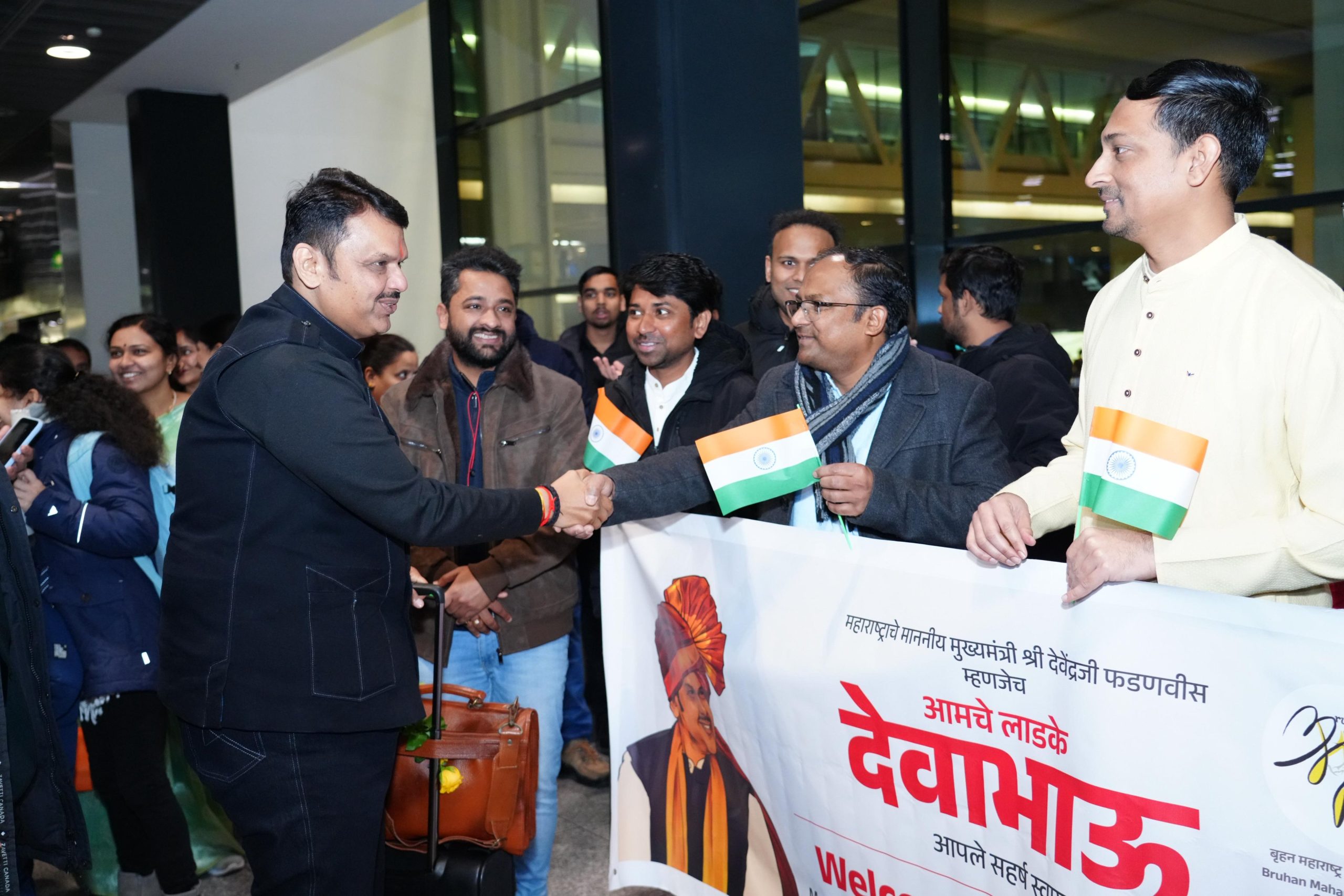 मुख्यमंत्री देवेंद्र फडणवीस यांचे आज दावोस येथे आगमन होताच मराठी भाषिक नागरिकांनी त्यांचे मराठमोळ्या पद्धतीने ओवाळून स्वागत केले. स्वित्झर्लंडमधील भारताचे राजदूत मृदुलकुमार यांनी देवेंद्र फडणवीस यांचे प्रारंभी स्वागत केले. केंद्रीय मंत्री प्रल्हाद जोशी आणि किंजारापू राम मोहन नायडू यांनीही देवेंद्र फडणवीस यांची भेट घेत महाराष्ट्रातील महापालिका निवडणुकीत मिळालेल्या प्रचंड यशाबद्दल त्यांचे अभिनंदन केले. मार्गात आणि इतरही नागरिकांनी त्यांची भेट घेतली तेव्हा प्रत्येक जण महाराष्ट्रात नुकत्याच पार पडलेल्या महापालिका निवडणुकीत मिळालेल्या दणदणीत यशाबद्दल त्यांचे अभिनंदन करत होता. एकूणच महाराष्ट्रातील महापालिका निवडणुकीची धूम तेथेही पाहायला मिळाली. बृहन्महाराष्ट्र मंडळाकडून झालेल्या कार्यक्रमात 'स्वागत देवाभाऊ' असा फलक लागला होता.