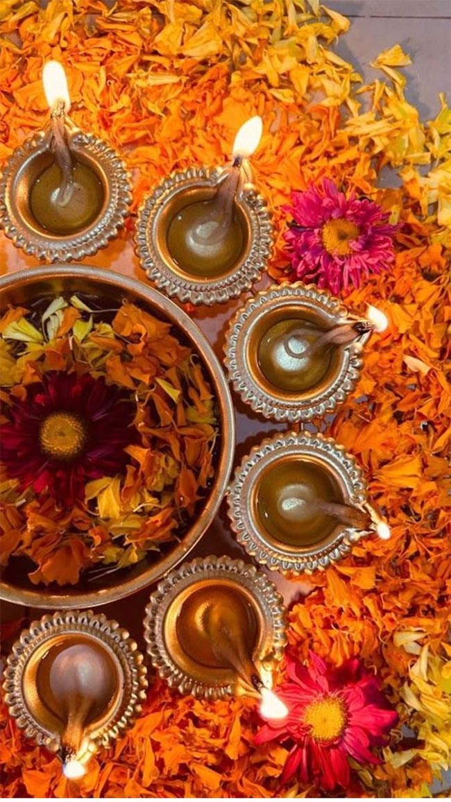 घरात दिवे लावून, फुलांनी सजावट केली जाते